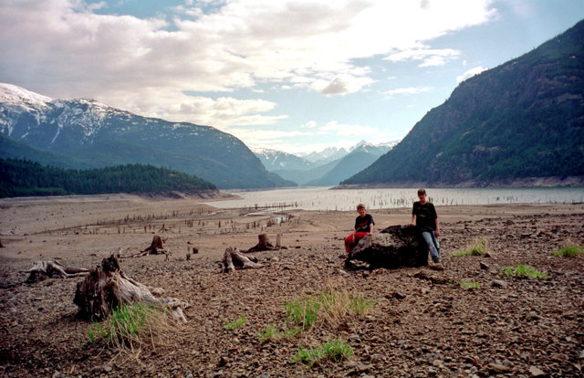 View of Ross Lake from Lightening Creek CampFrom our camp was this spectacular view looking south down the length of Ross Lake. This photo shows the extent of the lowered water level and the number of trees that are normally buried later in the summer. This is very beautiful country, and reminds one of a fjord in Norway. It is very crowded in summer with hikers competing with boaters for camp spots. We had it to ourselves on this trip. |